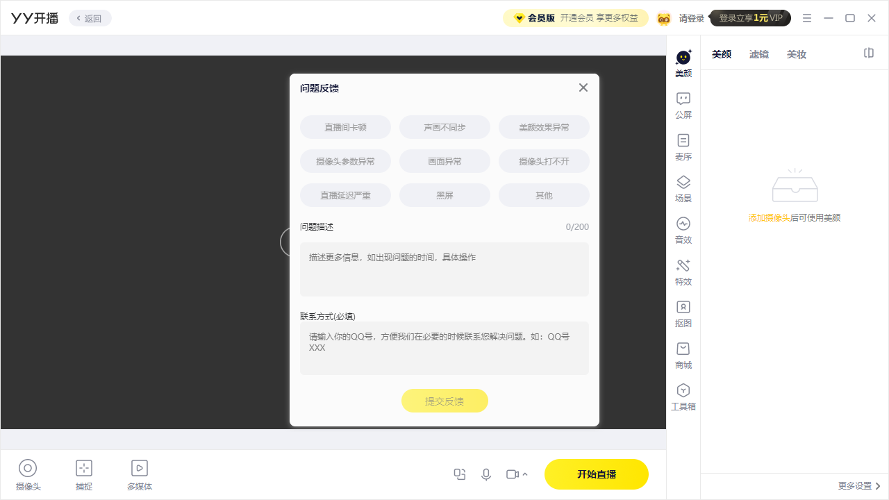 添加官方QQ群寻找技术大大进行解决:YY开播官方交流群:623471011
